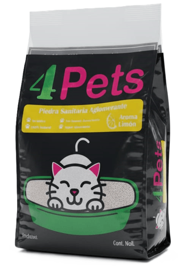 La piedra sanitaria aglomerante, es producto de origen mineral, que absorbe, aglomera, diseca las heces y el orín de las mascotas cuando entra en contacto con el producto.