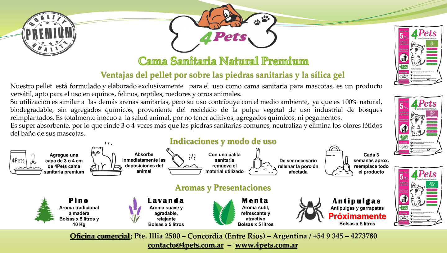 Inspirados en en el principio de la aromaterapia, es el único pellet formulado y aromatizado para el uso exclusivo de mascotas del mercado.